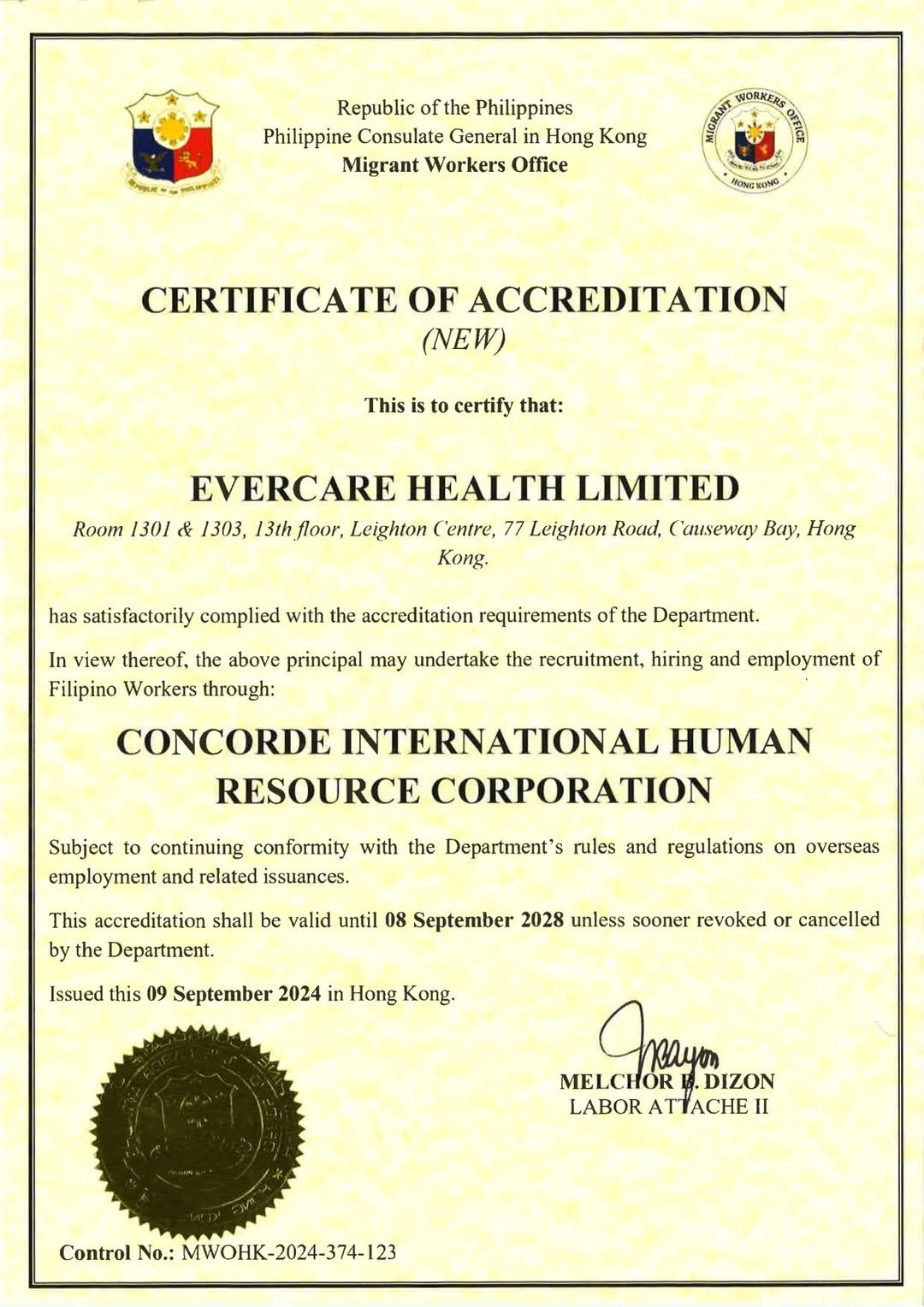 Certificate of Accreditation No.: MWOHK-2024-374-123