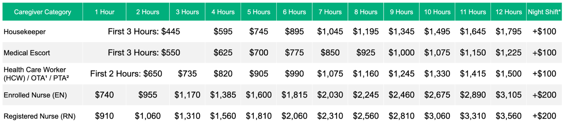 - Service rates apply to all placements of nurses and healthcare workers engaged through Evercare, unless otherwise specified.
