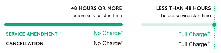 Evercare will endeavour to accommodate requested changes as much as possible, which will incur charges depending on the notice period as outlined below. Upon failure to do so, such requests will be treated as a cancellation.